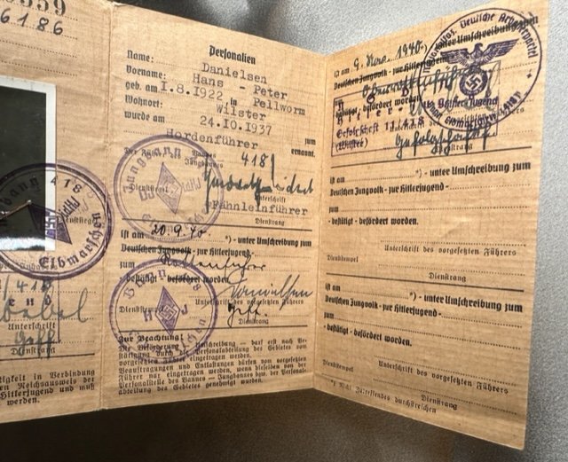 Führerausweis der Hitler-Jugend for HJ leader Hans-Peter Danielsen of Bann 418