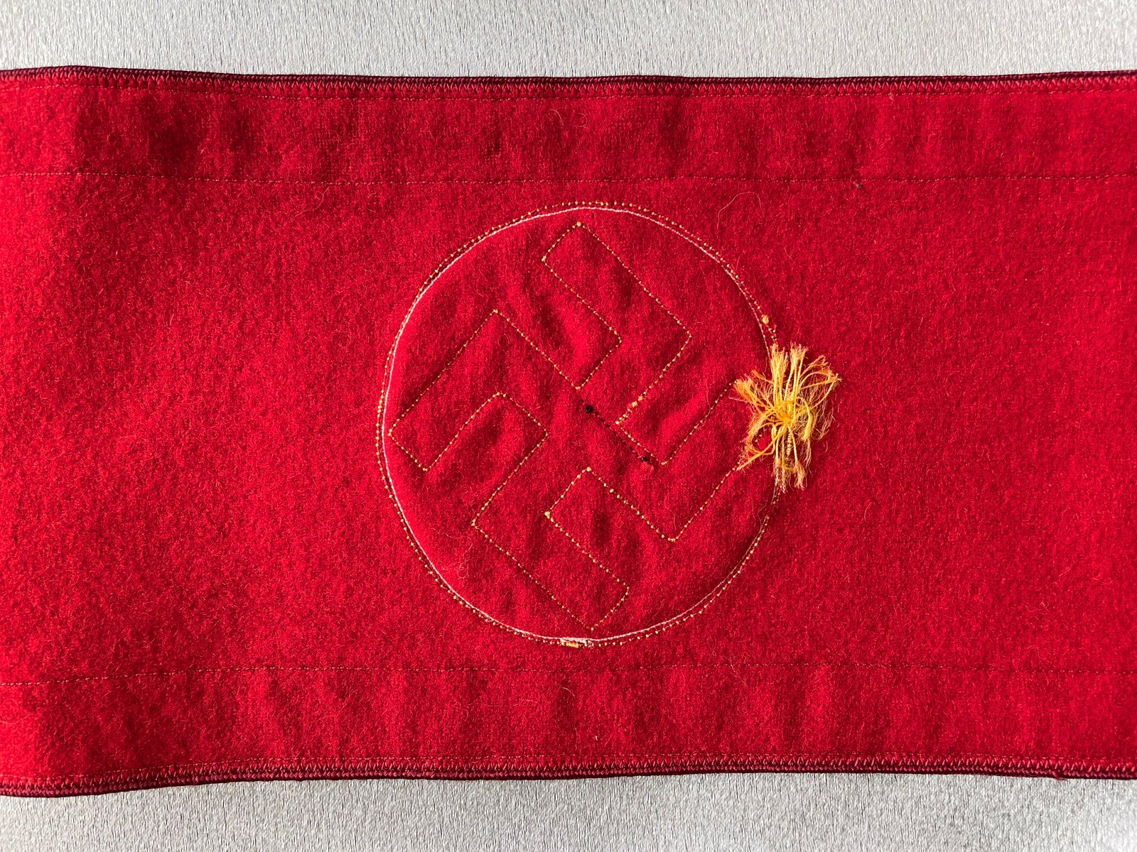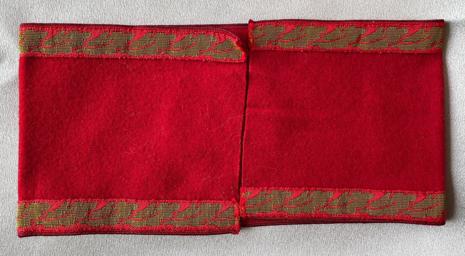 Armband for Gauleitung Leiter eines Amtes. Bullion oakleaves with black ribbon swastika surrounded by gold braid. Approx. 20" in length, choice condition