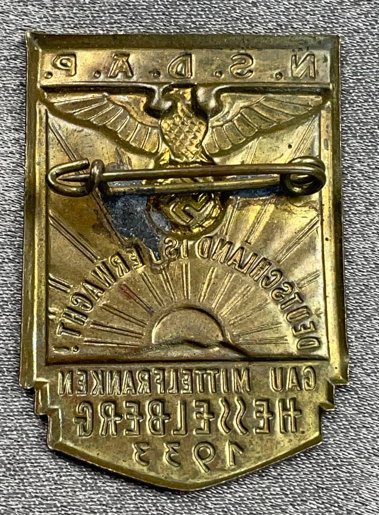 N.S.D.A.P. Deutschland ist Erwacht! Gau Mittelfranken Hesselberg 1933 Tinnie. Metal pinback.
