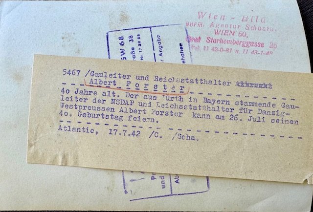 Gauleiter and Reichsstatthlater Albert Forster, period press photo, 5" X 7"