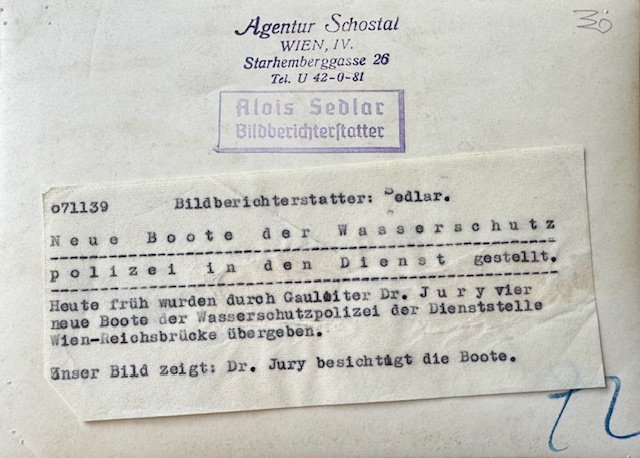 Gauleiter Dr. Hugo Jury with Water Police, period photo, 7" X 5"
