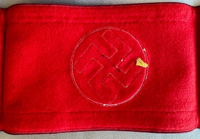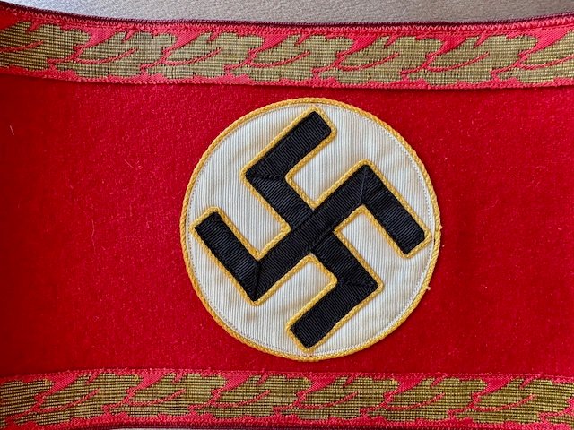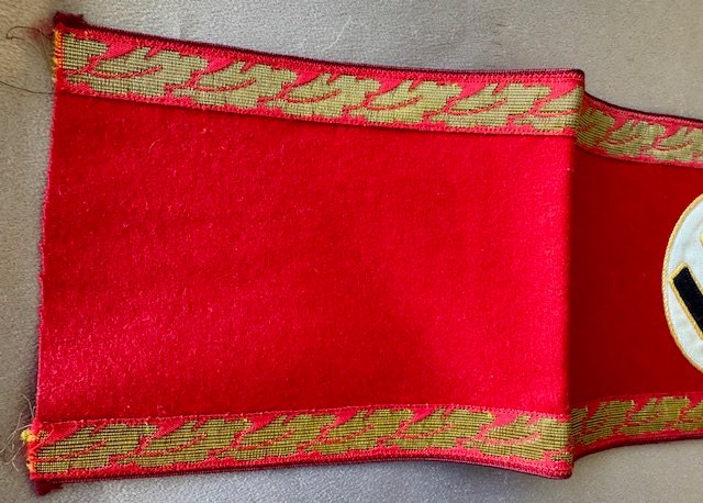 Gauleitung Leiter eines Amtes Armband. Bullion oakleaf bands with black ribbon swastika, reverse ink stamped with arrow and "oben", approx. 21" in length