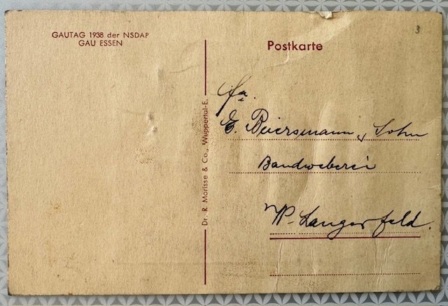 Gautag Essen 1938 Postcard, rarely seen card, with red cloth center175