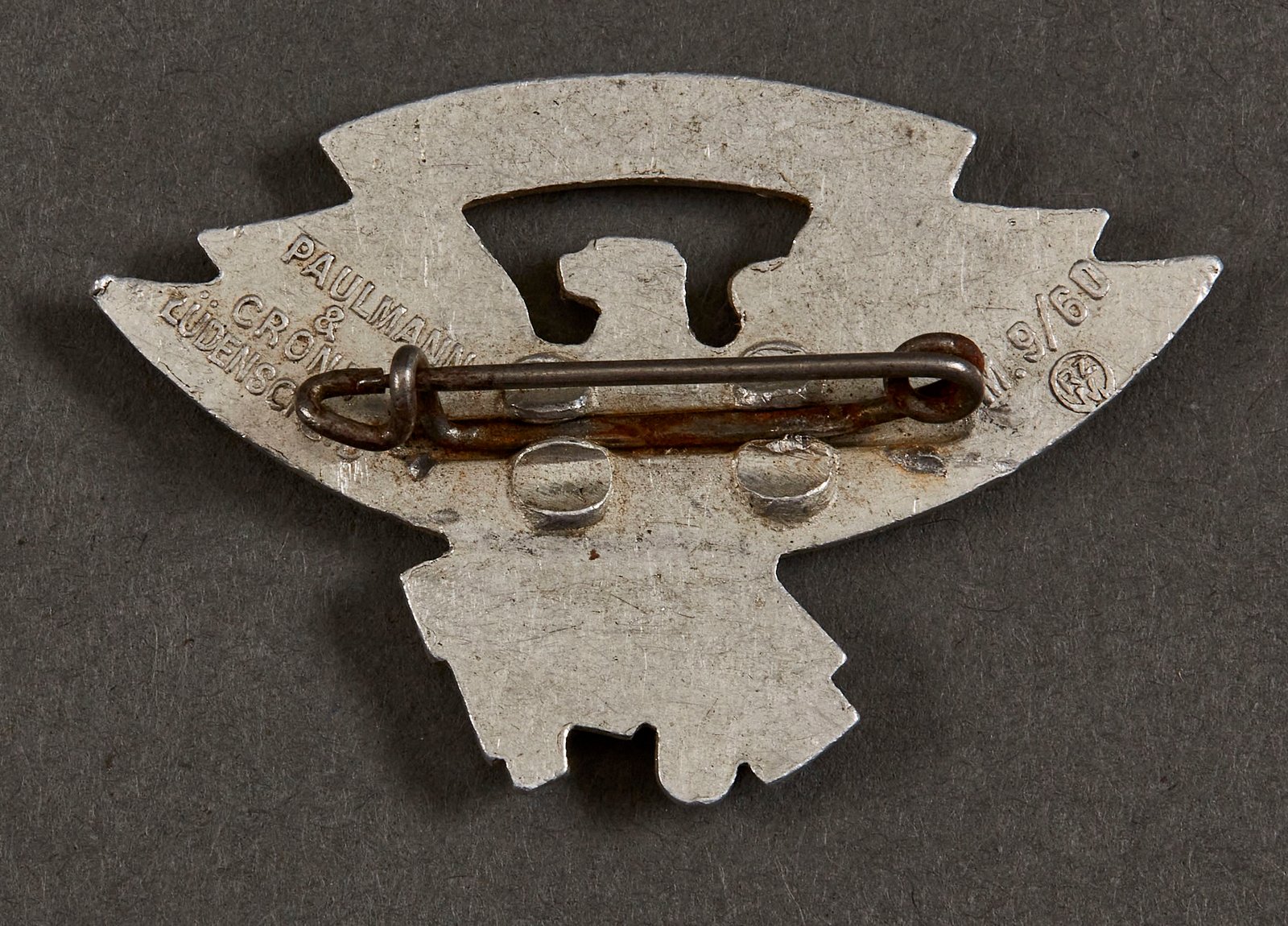 Gebietsaufmarsch Gebiet Westf. 9 Tinnie, aluminum, 28mm X 44mm, maker marked