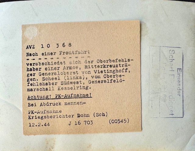 After a trip to the front by Kesselring. This photo marked "for official use only", approx. 7" X 5"
