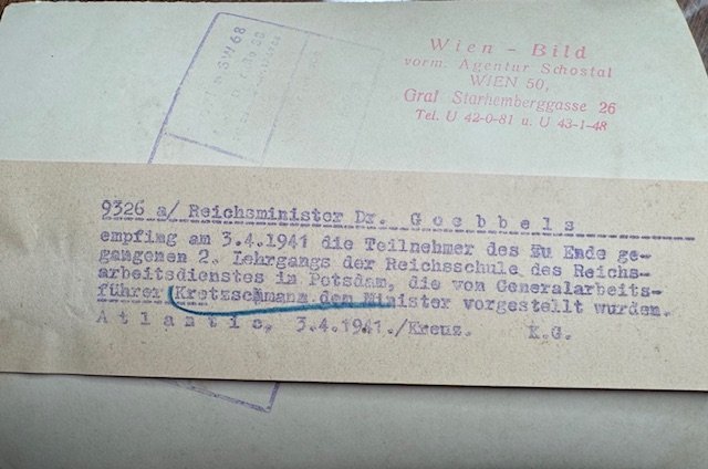 Generalarbeitsführer Kurt Kretschmann with Dr. Goebbels, period press photo, 7" X 5"