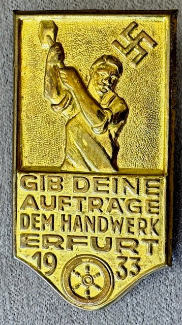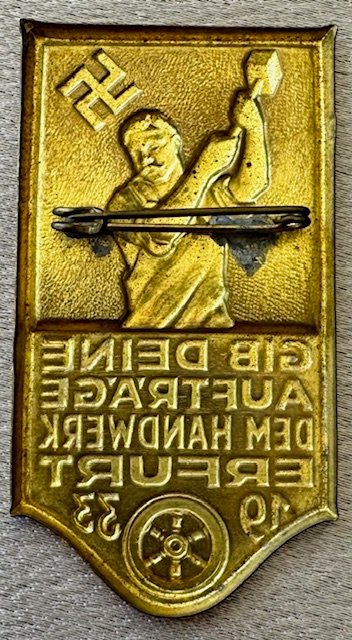 Gib deine Aufträge dem Handwerk Erfurt 1933 Tinnie, metal pinback, 30mm x 56mm