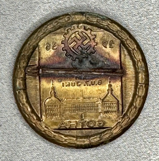 Gotha Tinnie, "DAF Aufmarsch Gotha am 6.u.7. Juni 1936" tinnie. Metal, pinback.