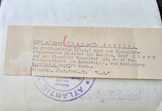 Graf Galeazzo Ciano Photo with Ribbentrop, period press photo, 7" X 5"