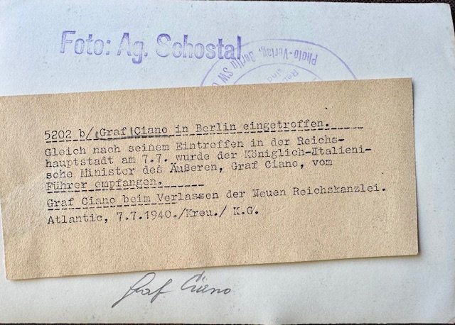 Graf Galeazzo Ciano with Otto Meissner Photo, period press photo, 7" X 5"