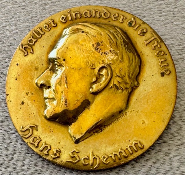 Keep your loyalty to one another Hans Schemm Tinnie, gold wash metal pinback, 38mm