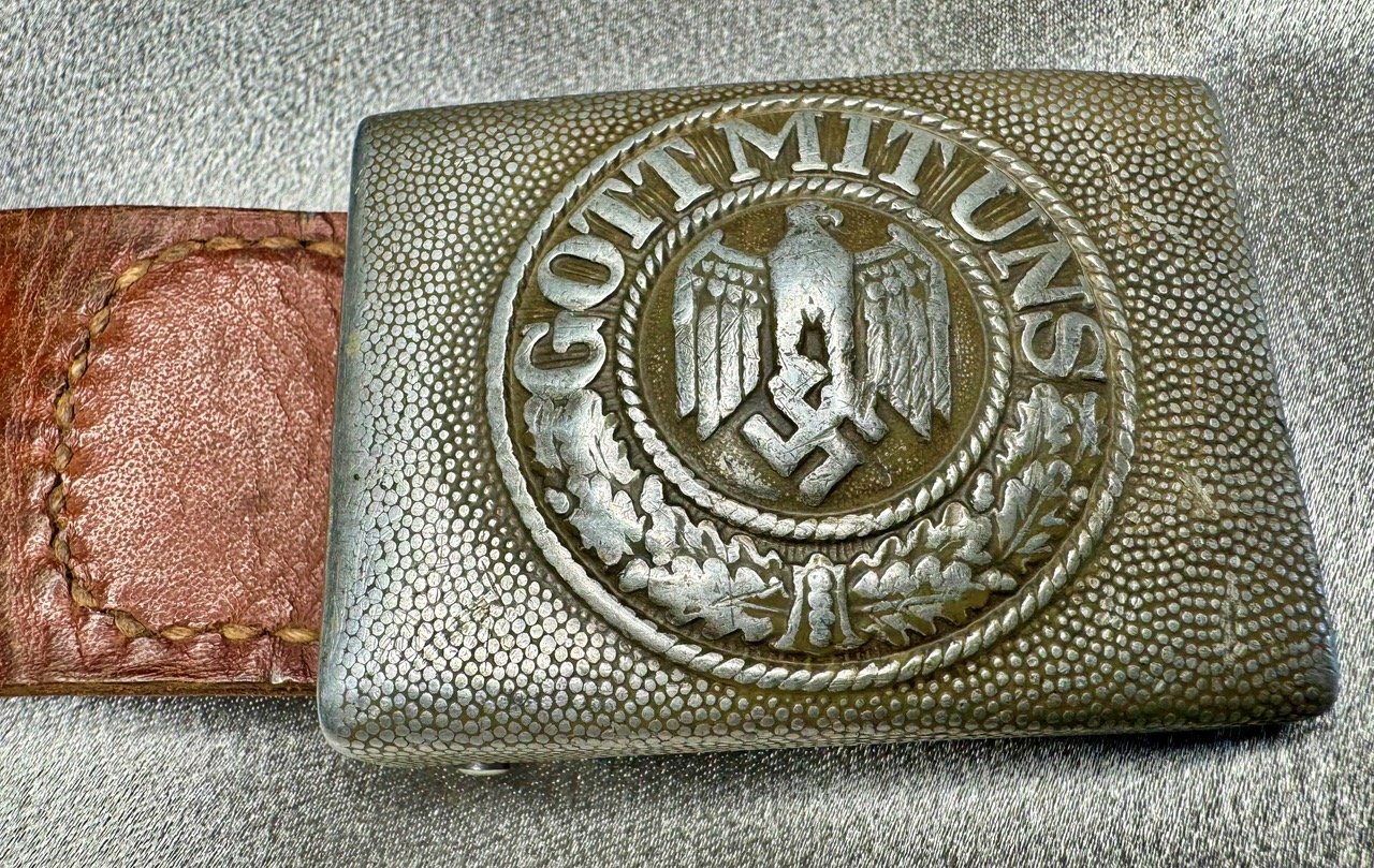 Heer Aluminum Buckle, made by Schmidt & Co., Schwelm and dated 1937 , complete with maker marked leather tab.