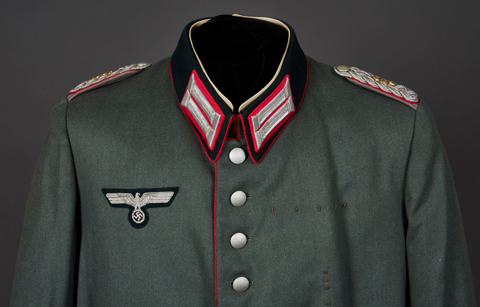 Heer Parade Dress Tunic for a Major in the Veterinary service. This officer was well decorated as indicated by the numerous medal loops. Excellent condition !