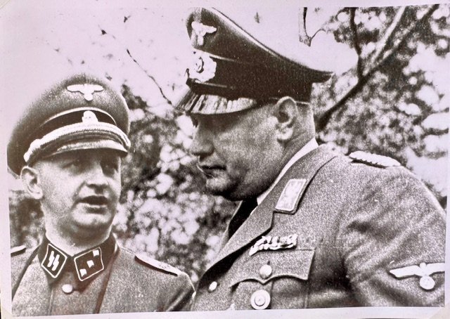 Heinz Linge with Wilhelm Brückner (right), post war print, 7" X 5"