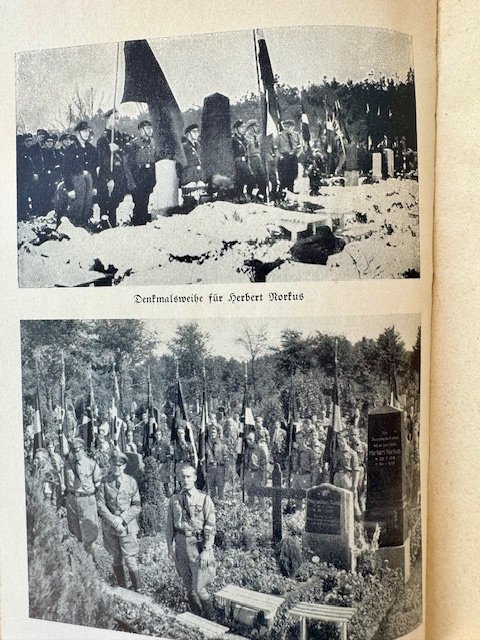 Rare 5-1/2 x 8-1/2 inch, 156 page hardcover book photo book by Arnold Littmann, published in 1934 by Traditionsverlag in Berlin. About 15 year old Herbert Norkus, HJ martyr, killed by communists, her was one of the youngest victims.