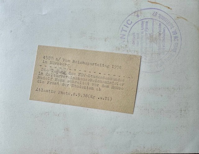 Rudolf Hess inspecting NS Studentenbund during the 1938 Reichs Party Day. Large period press photo, approx. 8 3/4" X 6 5/8" in size