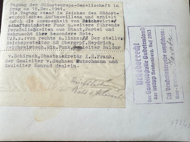 Heydrich, Funk, Schirach, Frank, Mutschmann, and Henlein, period photo, 7" X 5"