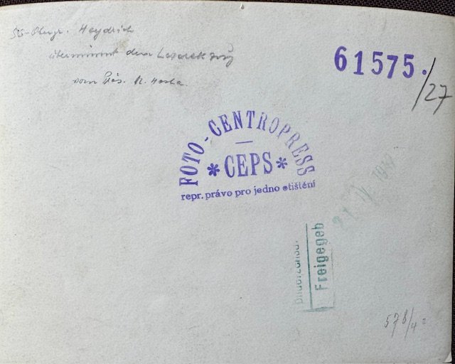 Heydrich with SS Gruppenführer Frank in Prague, period photo, approx. 7' X 5"