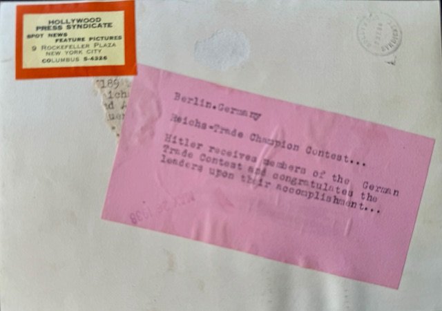 Hitler Congratulates Reichs Trade Champions Photo. Press photo, approx. 7" X 5" in size.