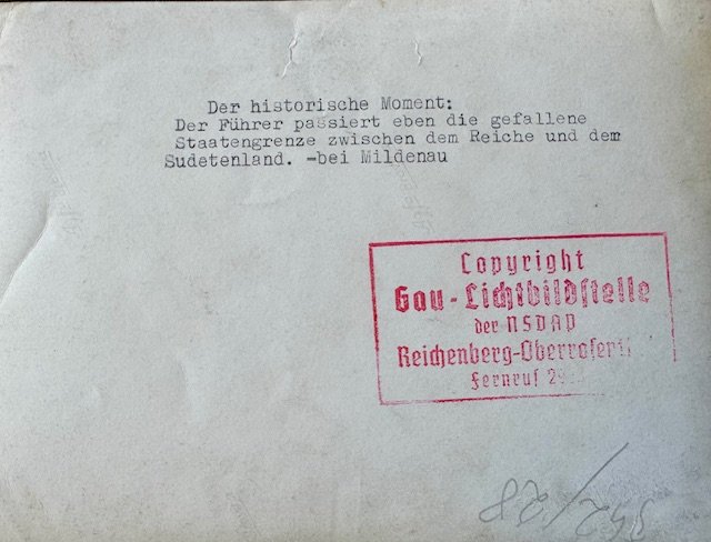 Hitler, Homecoming of the Sudetenland, period photo, 7" X 5"
