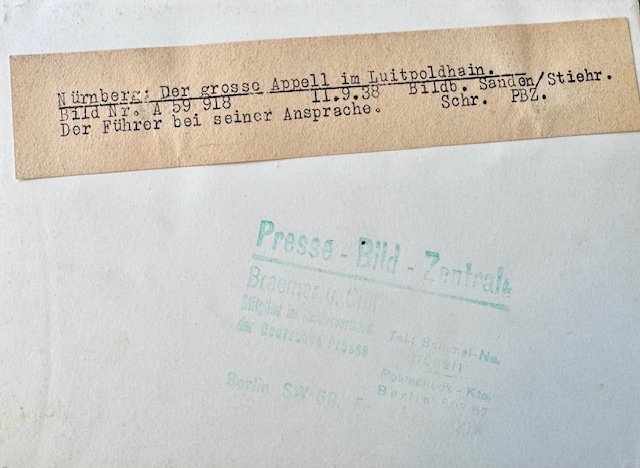 Hitler Speaking at Luitpoldhain on Sept 11, 1938, period photo, 5 1/4" X 7 1/4"