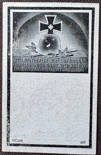 Hitler Youth Death Card #18612