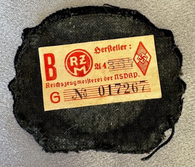 Hitler Youth Marine Cap Insignia, nice bullion embroidery, RZM tag to reverse