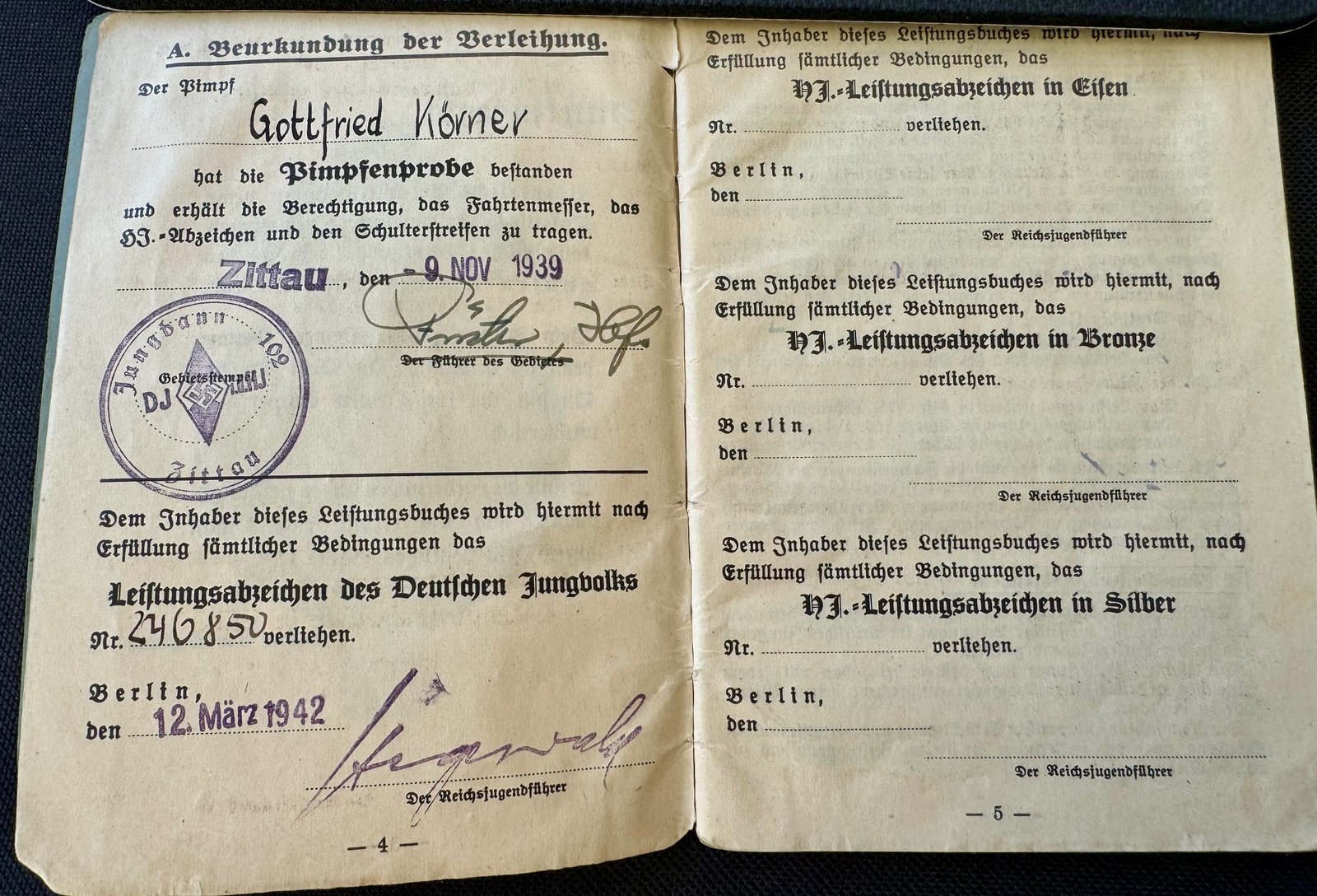 Hitlerjugend Leistungsbuch for DJ boy, 64 pages, complete