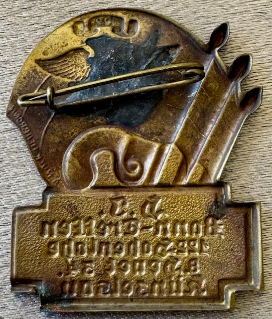 H.J. Bann-Treffen 122 Hohenlohe 8. heuet 34. Künzelsau Tinnie, metal pinback, maker mark to reverse, 30mm x 40mm, rare