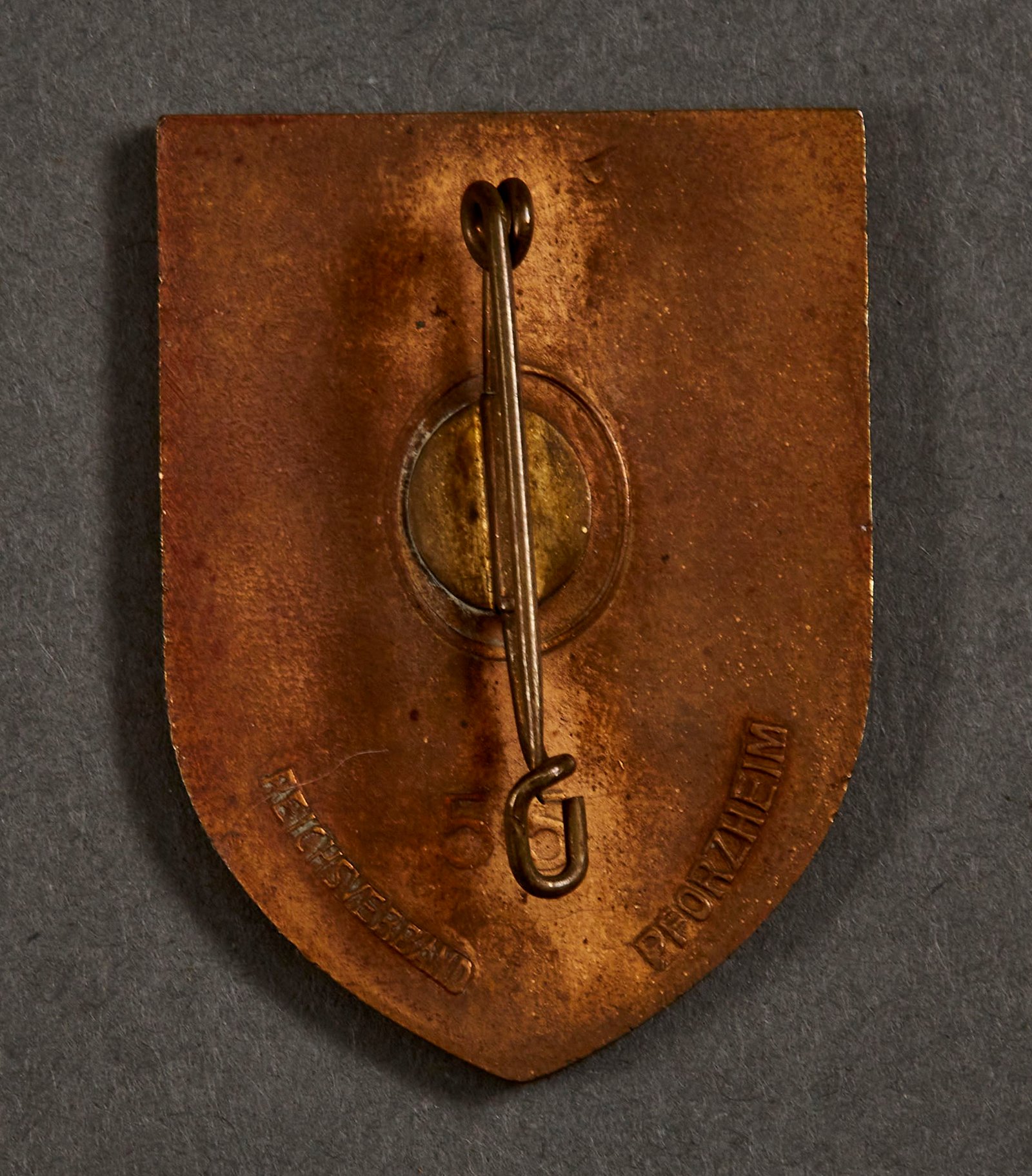 HJ DAF Reichs-Berufs-Wettkampf der Deutschen Jugend 1934 Tinnie, solid metal, maker marked and numbered 55, 27mm x 37mm