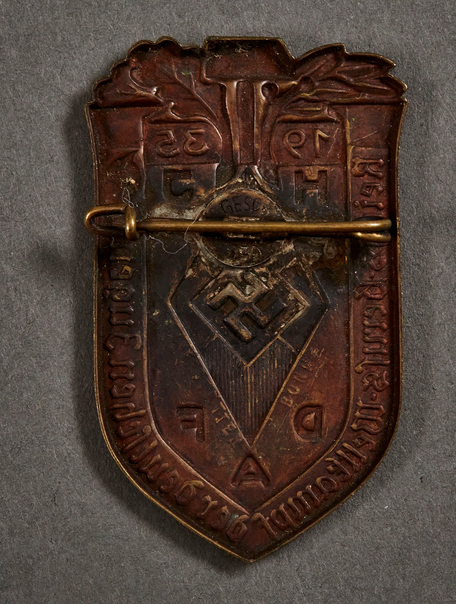 HJ DAF Reichs-Berufs-Wettkampf der Deutschen Jugend 1935 Tinnie, metal, 28mm x 38mm