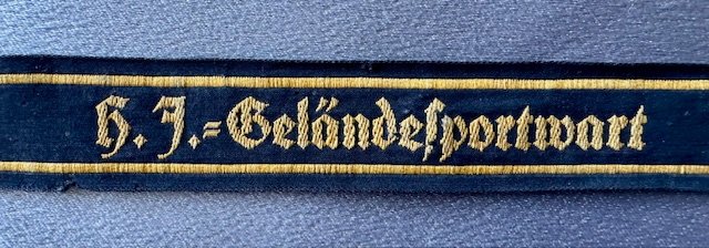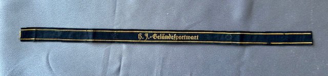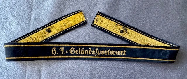 HJ Gelandesportwart Cuff Title (HJ Field Event Attendant), this one was used with 3 of the 5 snaps still intact which were used to fasten to the sleeve, approx. 16" in length