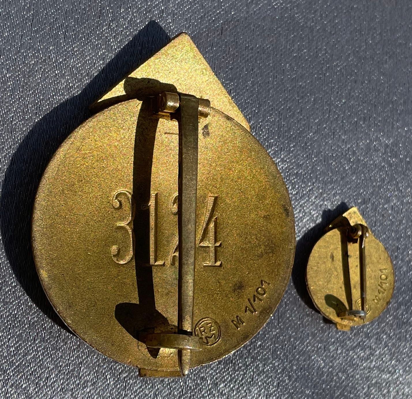 HJ Leader Sports Badge in Gold, numbered 3124, with miniature, both marked RZM M1/101