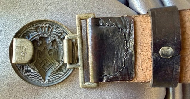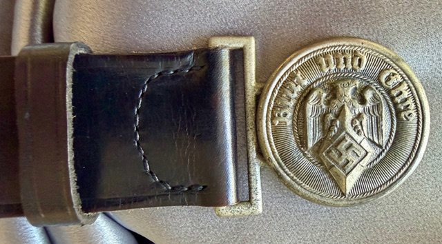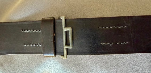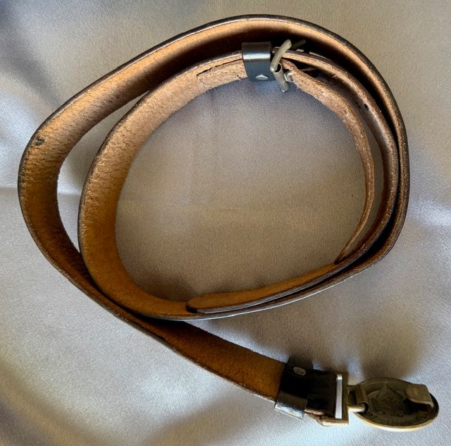 H.J. Leaders black leather belt and buckle, buckle is marked "RZM M5/6". Overall length of belt is approx. 45". Mint condition and rare to find !
