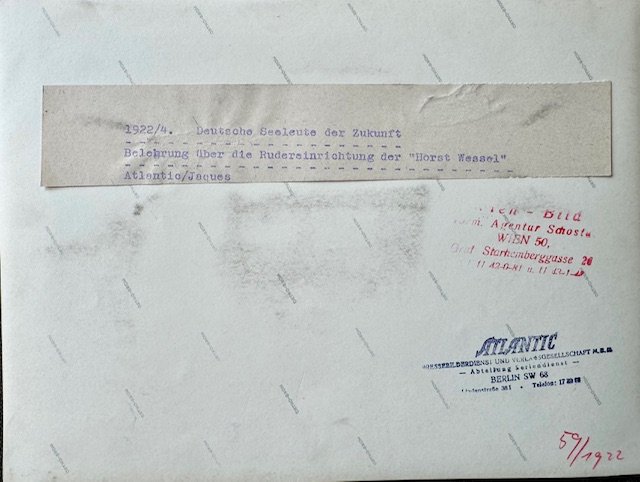 German sailors of the future. Training of the rudder system of the "Horst Wessel". Large press photo, approx. 9 1/2" X 7 1/4" in size.