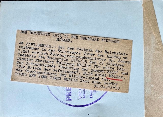 HJ Oberbannführer Eberhard Wolfgang Möller Photo, period press photo, 5" X 7"