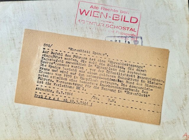 Honor Roll Clasp of the German Army and Waffen SS, introduced January 1, 1944. Period press photo, 9 1/2" X 7"