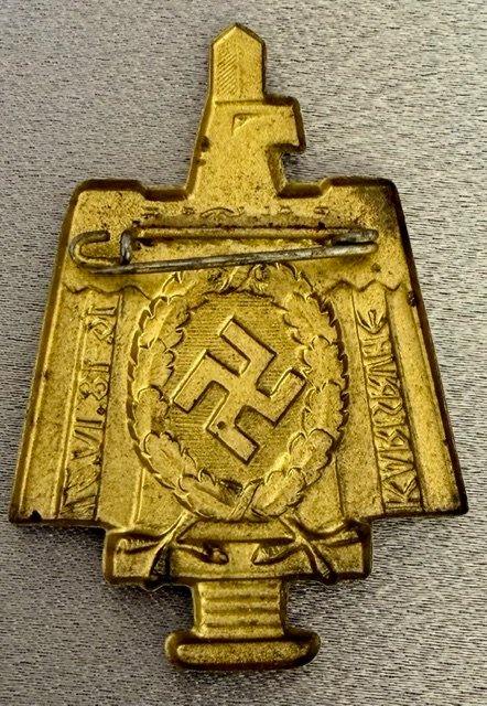 Karlsruhe Tinnie. Gautag Karlsruhe 16.-18.IV.37 Tinnie. Metal pinback. 37mm X 55mm
