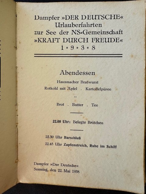 KdF Der Deutsche Cruise Ship Album, includes cruise menus and Norwegen Map