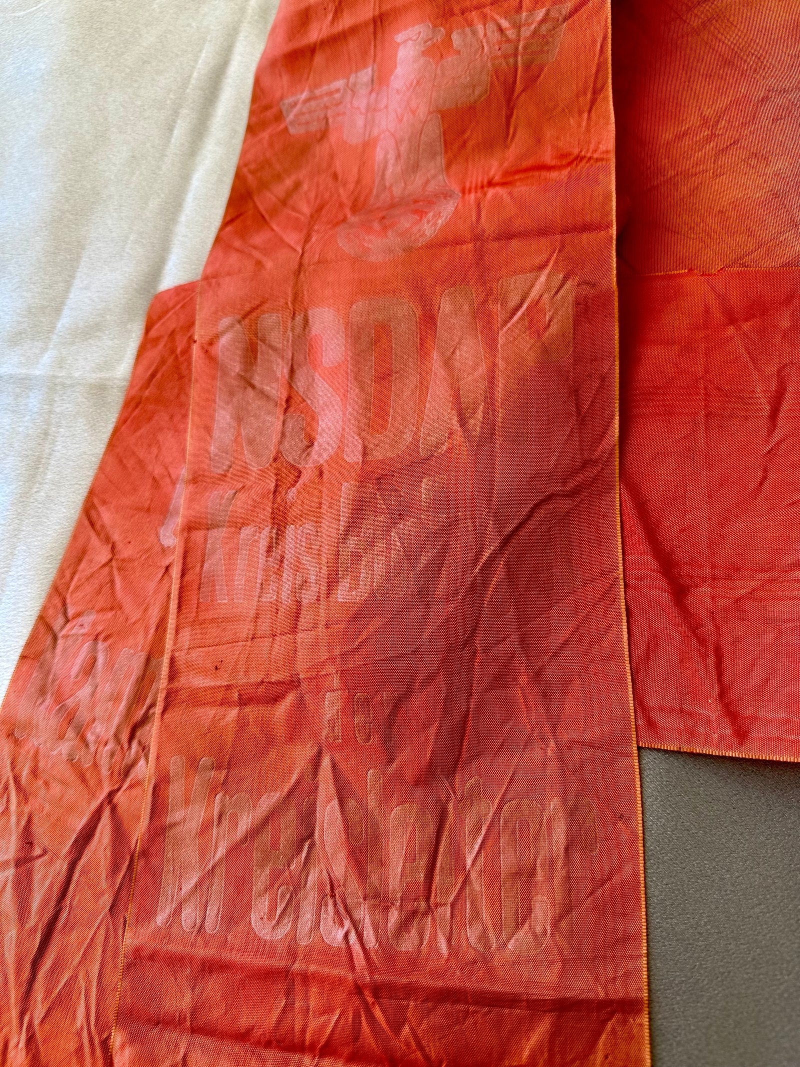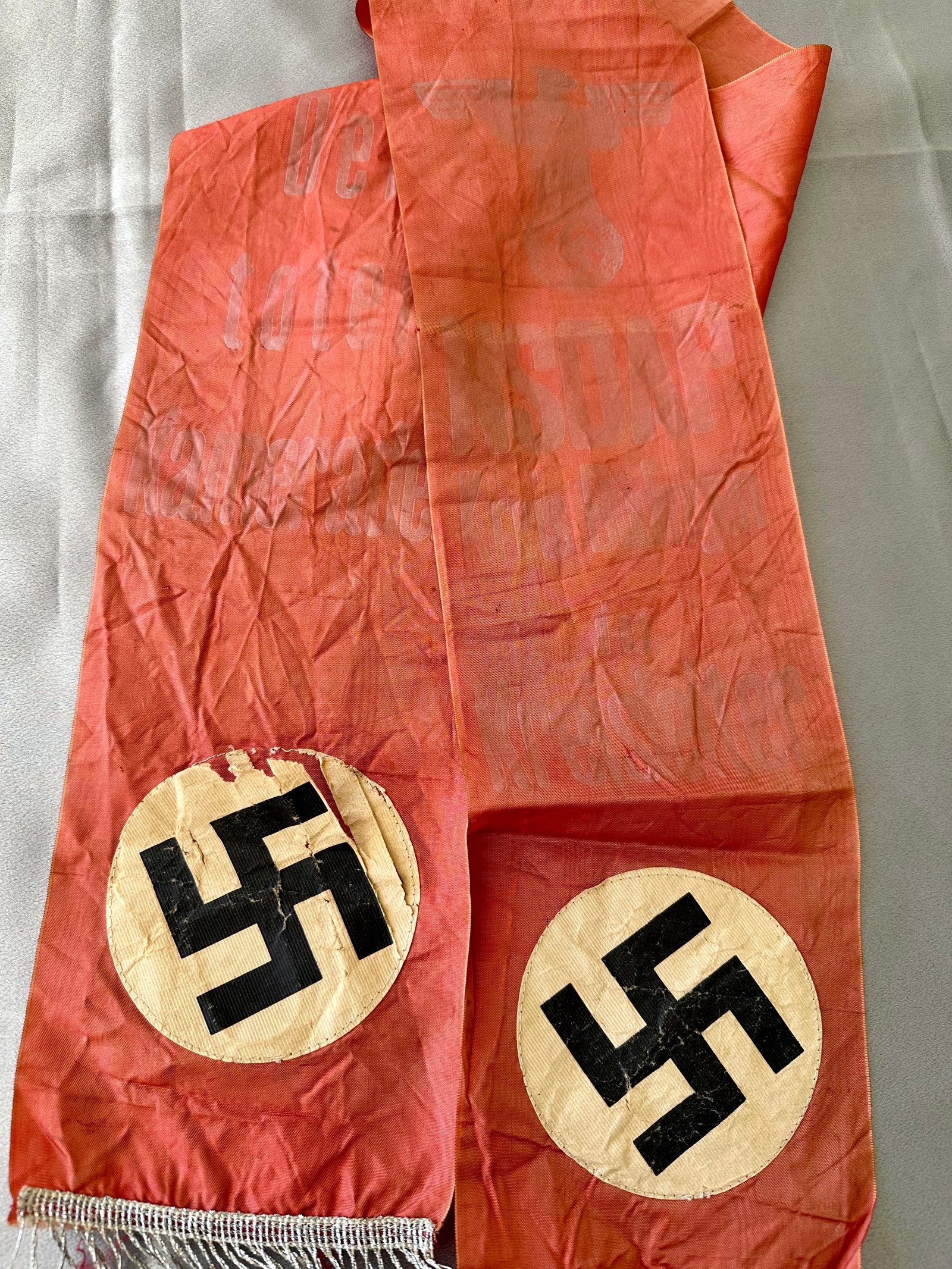 "NSDAP Kreis Büdingen der Kreisleiter". This would have been presented by the Kreisleiter of Kreis Büdingen. Full length of 6' X 6" in size, fading to print. RZM tag to reverse.