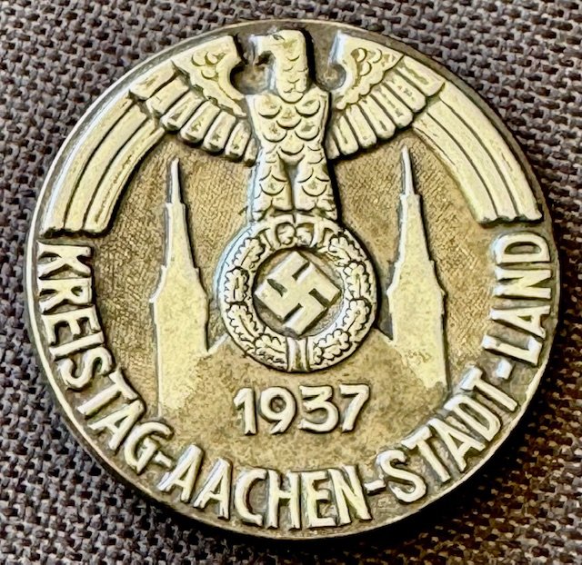 Kreistag Aachen Stadt Land 1937 Tinnie, metal pinback, 35mm
