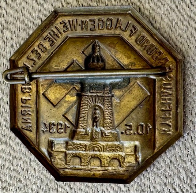 Kyffhäuserbund Flaggenweihe Bez. Verb. Pirna 10. 5. 1934 Tinnie, metal pinback, 34mm x 34mm