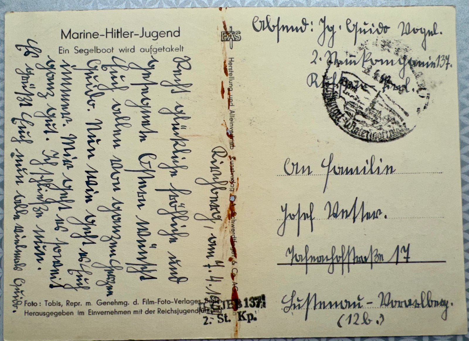 Marine Hitler Jugend Postcard