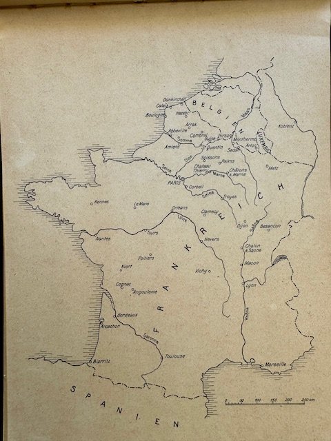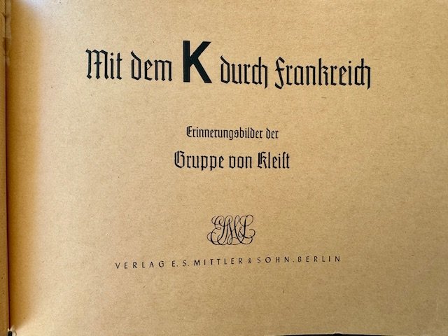 With the K through France Memory pictures of group Kleist. Picture album, 243 pages of mostly pictures, 10 1/2" X 7 1/4", loose spine.