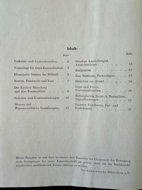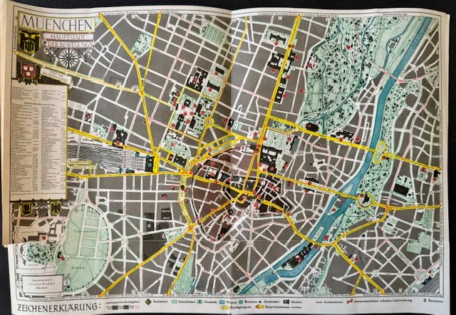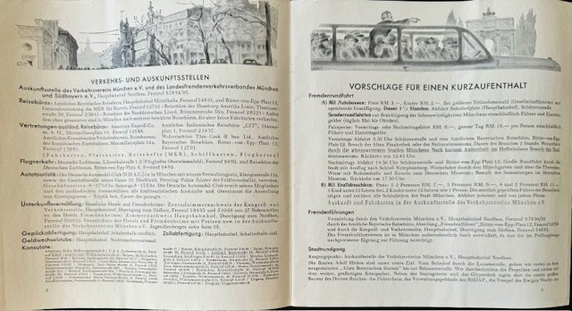 "Munich advice and suggestions for your stay in the capital of the movement". Text with lots of information, color fold out map in the middle, 20 pages, very nice condition, rare