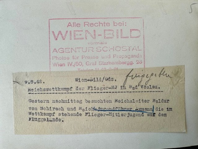 National competition of the HJ pilots in Bad Vöslau with Axmann and von Schirach looking on. Press photo, approx. 5" X 7" in size