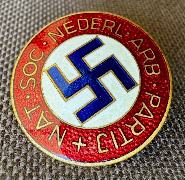 Nationaal Socialistische Nederlandsche Arbeiderspartij (NSNAP) Membership badge, reverse maker marked for Ferdinand Wagner, Pforzheim. 23mm. Very rare.