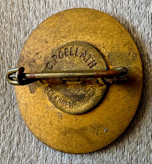 German Cultural Community NSKG Badge by C. Poellath, Schobenhausen. Zink construction with soldered on set up. Maker marked on the reverse . 23mm, excellent condition