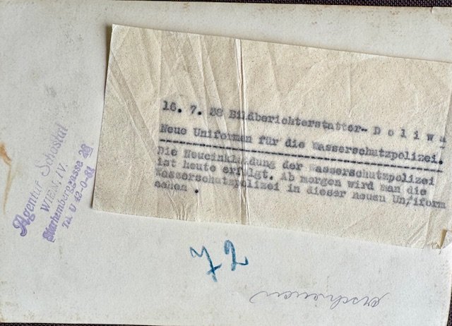 New uniforms for the Water Protection Police, period press photo, 7" X 5"