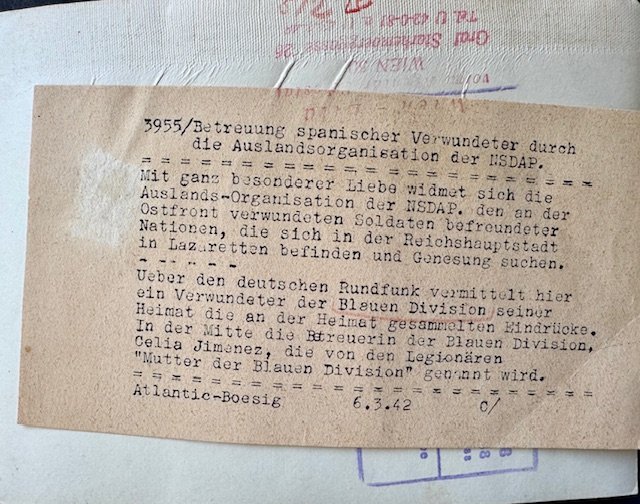 Care of Spanish wounded by the foreign organization of the SA, press photo, 7" X 5"